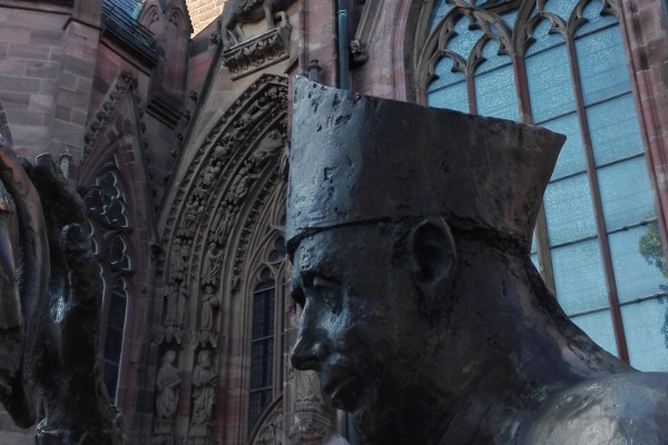 Romanesque pillar basilica with Gothic south portal, impressive stone sculptures. Eastchoir in baroque design, high altar by Balthasar Neumann. Taste and see Medieval history, by storytelling and interesting facts concerning construction. Discover faith in architecture and the gospels in stone.