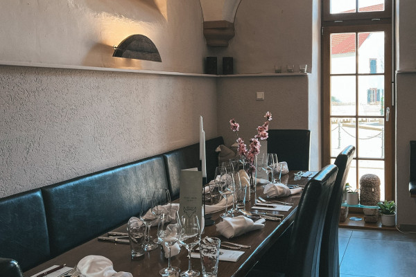 Die Veranstaltung findet in unserem romantischen Kreuzgewölbe oder dem idyllischen Gutshof statt.